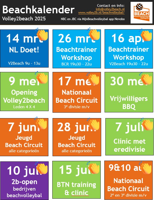 - Zaterdag 9 mei – Openingsfeest & toernooi Volley2Beach